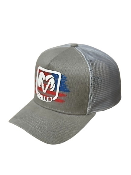 Modelo trucker, copa em sarja cinza, com a aba moldável também em sarja cinza, tela e forro 100% poliéster na cor cinza, o forro é personalizado com imagem da nossa paixão Ram, com fecho em plástico de alta resistência, ajustável na parte traseira, com etiqueta personalizada, e bordado em patch sublimado e silkado EUA.